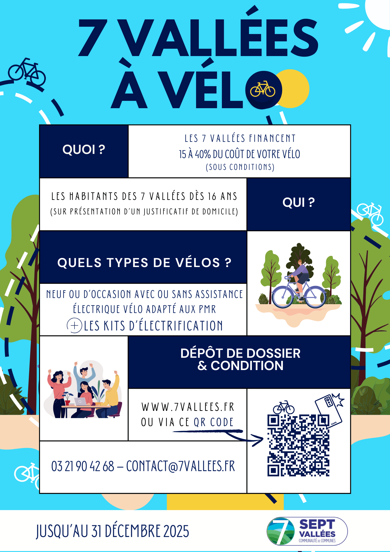 Dans le cadre de sa compétence mobilité et pour promouvoir un autre rapport à la mobilité, la communauté de communes des 7 Vallées peut (sous conditions) vous aider à financer l’achat d’un vélo. Une opération qui a débuté en 2024. Cette démarche s’inscrit dans une large politique de promotion du vélo de la part du … Lire la suite de La communauté de communes des 7 Vallées peut vous aider à acheter un vélo